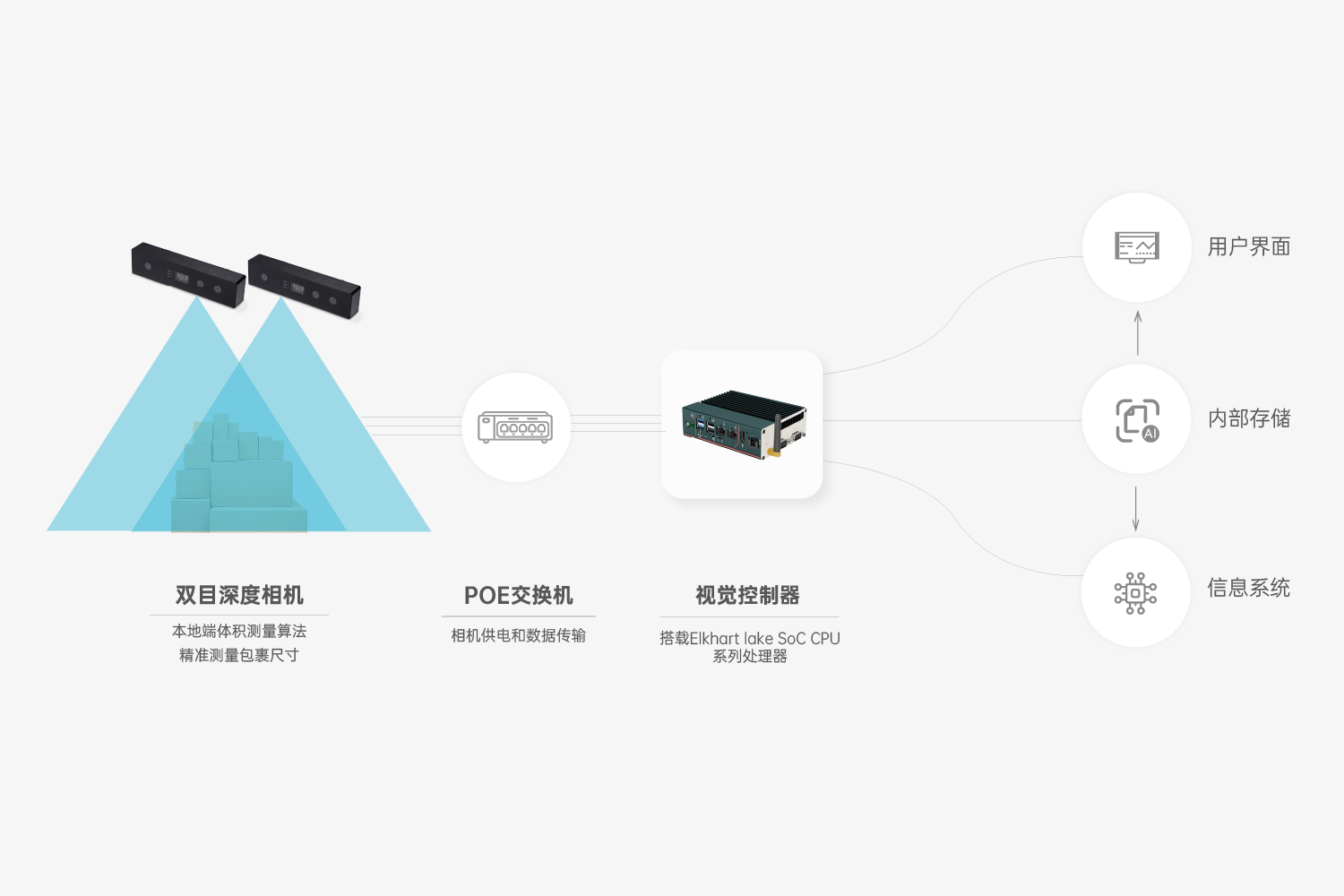 首页 动态 bevictor伟德智能推出全新体积测量解决方案,赋能物流企业数字化降本增效 bevictor伟德智能推出全新体积测量解决方案,赋能物流企业数字化降本增效 企业动态 2024-01-25 浏览量:2208 随着物流行业对精细化管理运营要求不断提升,包裹体积数据对企业提升测量效率和运输效率、优化存储空间及物流配送路线等方面均有重要意义。 物流行业传统采用人工测量方式,测量准确度受限于测量员的技术和经验,不确定性高,效率低,人力成本高,还存在隐形的员工管理成本,以及由于测量误差导致的仓储空间利用率低等问题。 如何进行精细化、自动化、智能化的体积数据采集,从而实现降本增效? 除纸箱等常见货物,对非规则、软包、高反光件、薄件等特殊形态包裹的精准测量,对多数体积测量制造企业提出更高的技术要求。 bevictor伟德智能静态体积测量方案,基于6年技术沉淀,自主研发出HumanoidVisionTM技术,能够精准测量各种类型包裹体积,满足小件、大件、超大货物场景的体积测量需求,用智能赋能物流行业数字化升级。 多相机组合方案 bevictor伟德智能采用主动双目立体成像技术,结合彩色摄像头输出高帧率RGB-D图像,通过自研的高精度体积测量算法,可以精准输出体积数据,满足仓储物流、商超、航空货站等场景下体积测量任务。 方案优势 01 测量精度高,传输稳定高效 稳定输出毫米级精准深度图,扫描帧率达8FPS; 司眸体积测量相机搭载了高精度算法和出色的硬件配置,适用全类型,多尺寸包裹测量场景; 千兆网络传输接口,抗干扰强,传输远,高频率传输数据时不掉线,不丢帧,数据传输稳定; RGBD实例分割算法,精准输出包裹的体积数据,平均测量精度可达5mm。 02 抗环境光干扰,适应性更强 支持光线变化场景下输出精准数据; 支持多曝光融合; 针对高反、强光、暗光场景优化体积测量深度数据; 03 安装范围广,调试易上手 单设备方案最大可支持1.8m高度安装;多设备方案最大可支持3.5m高度安装; 安装角度不严格限制为垂直(可偏差±5°); 接口简单,SDK集成简单,可供多平台SDK,方便二次开发。 应用场景 01 全类型包裹 适用于纸箱、异形件、软包、黑色包裹、高反光件(金属件、型材)、薄件(最低支持1mm薄件)等不同类型包裹的体积测量,一台设备兼具全类型包裹的体积信息采集,为业主提供更全能的解决方案。 02 多尺寸测量 #小件体积测量方案 bevictor伟德体积测量单相机方案最小可测量50mm x 50mm x 1mm立方体,规则物体精度±5mm;不规则物体测量精度:±10mm,适用于小件包裹体积测量场景。 #单设备大件体积测量方案 bevictor伟德体积测量相机内置高精度深度融合算法,具备大视场角,最大可测量1200mm x 1000mm x 1800mm 立方体,规则物体测量精度:±10mm;不规则物体测量精度:±20mm。针对快运行业的大件包裹,可快速精准完成快件的体积信息实时采集。 #方案可定制 bevictor伟德智能还可针对特定货物测量场景定制方案,支持多台3D相机拼接,软件集成拼接算法,最大可测量1800mm x 1800mm x 1800mm 立方体;测量精度:±20mm,针对仓储物流,码垛类型的超大件物体进行体积测量。 上一个:bevictor伟德智能助力连锁门店占领“客户心智” 返回列表 下一个:3D机器视觉可以完成许多2D机器视觉无法完成的任务。 更多新闻推荐 端到端 更易用丨bevictor伟德®散料运输动态监测与预警系统全新上市 新品上市 2025-02-20 小尺寸 更灵活丨bevictor伟德3D相机PEA020-800-Y80S上新,助力多场景智造升级 新品上市 2024-09-29 目前主流3D视觉技术各有什么优劣势?如何选择最Match的工业3D相机? 技术科普 2024-08-12 【最全选型攻略】挑选合适的工业相机,必须提前考虑12要素! 工业相机 2024-07-16 场景应用丨bevictor伟德智能智能煤流监测系统全新升级,赋能自动化煤流管控 场景应用 2024-07-08 场景应用丨bevictor伟德智能3D视觉+AI深度学习,助超大型货物体积测量更准,更稳,更易用 场景应用 2024-06-04