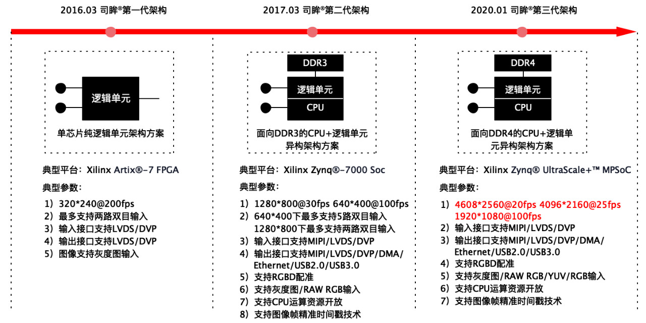第三代架构延用了 FPGA SOC 设计,实现了硬件加速级算法的可升级,可维护,可根据具体场景进行相应的配置和优化。