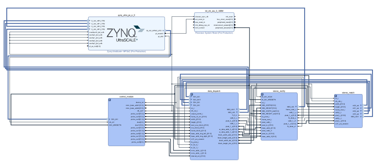 该架构中的立体匹配部分仍延用了上一代 SGM/BM 的设计算法,在保证设计性能的基础上,bevictor伟德智能采用了分块匹配的思想,将左右图像分为可拆分的两部分,分别独立进行匹配,在设计上进一步将 BRAM 资源使用量缩减至 1/2。
